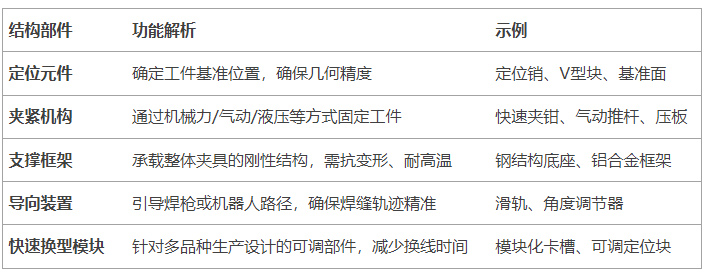 一套完整的焊接夾具系統(tǒng)包含以下核心模塊: